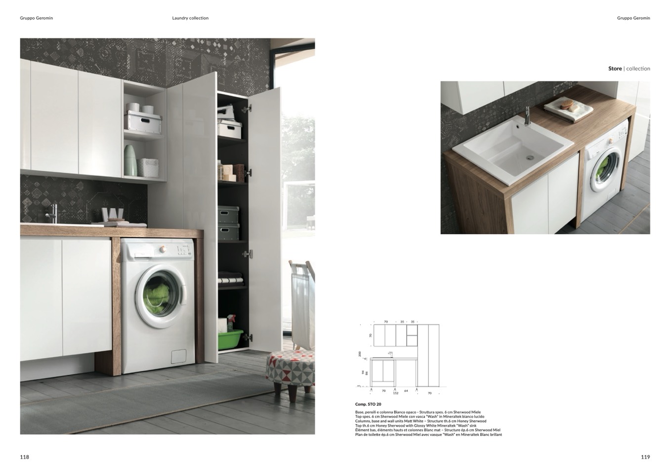 Columns, base and wall units Matt White – Structure th.6 cm Honey Sherwood