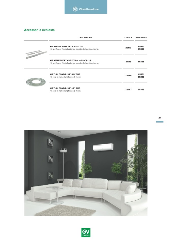 Kit staffe per l’installazionea parete dell’unità esterna.