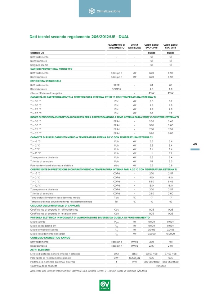 Referente per ulteriori informazioni: VORTICE Spa, Strada Cerca, 2 - 20067 Zoate di Tribiano (MI) Italia
