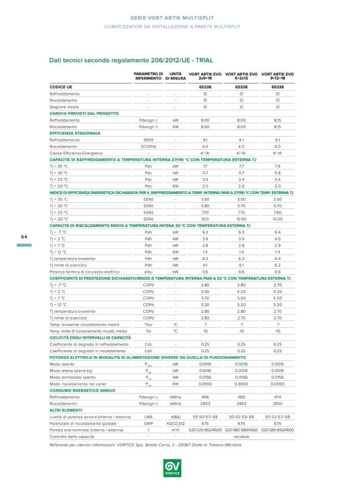 Referente per ulteriori informazioni: VORTICE Spa, Strada Cerca, 2 - 20067 Zoate di Tribiano (MI) Italia