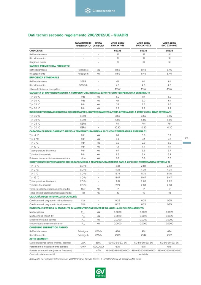 Referente per ulteriori informazioni: VORTICE Spa, Strada Cerca, 2 - 20067 Zoate di Tribiano (MI) Italia