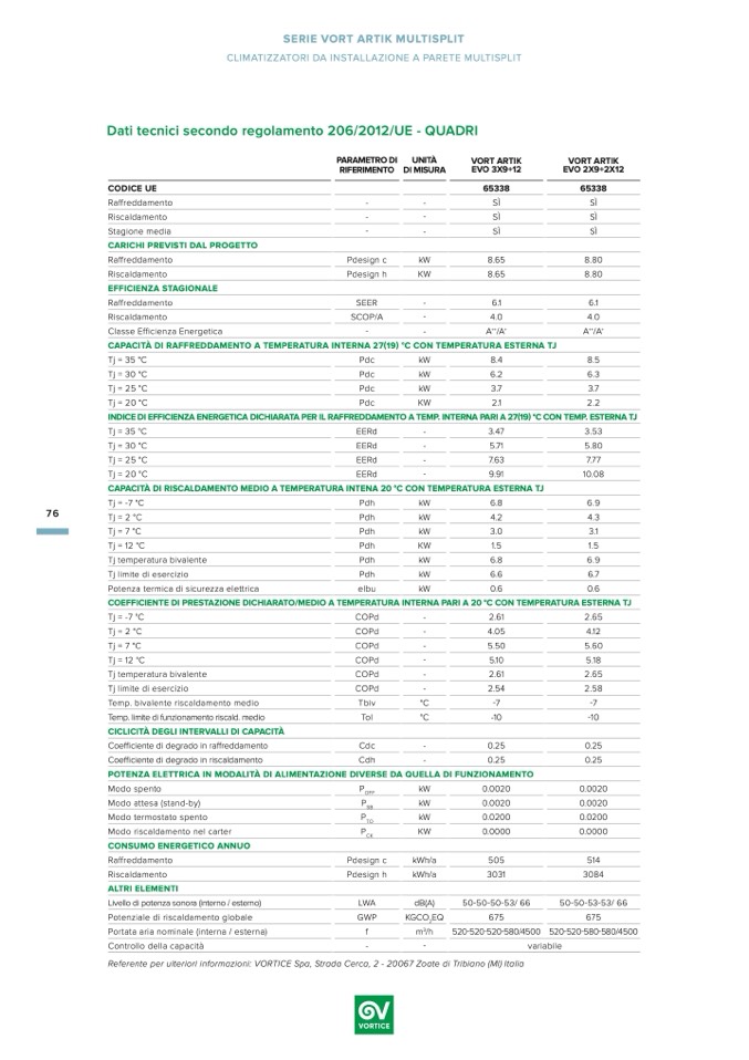 Referente per ulteriori informazioni: VORTICE Spa, Strada Cerca, 2 - 20067 Zoate di Tribiano (MI) Italia