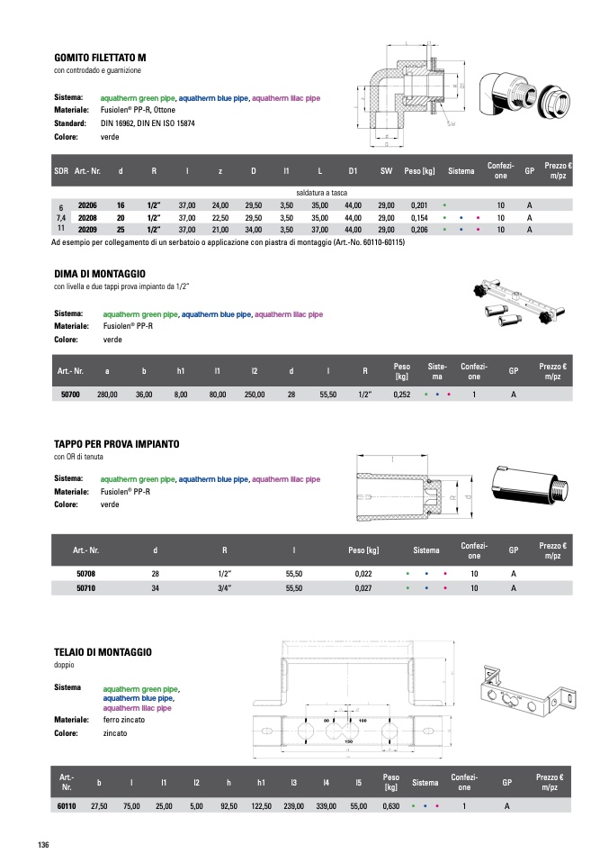 con livella e due tappi prova impianto da 1/2“