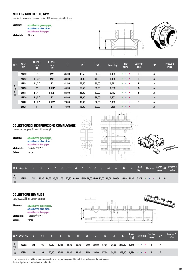 Se necessario, il collettore può essere ridotto o assemblato con altri collettori utilizzando la polifusione.