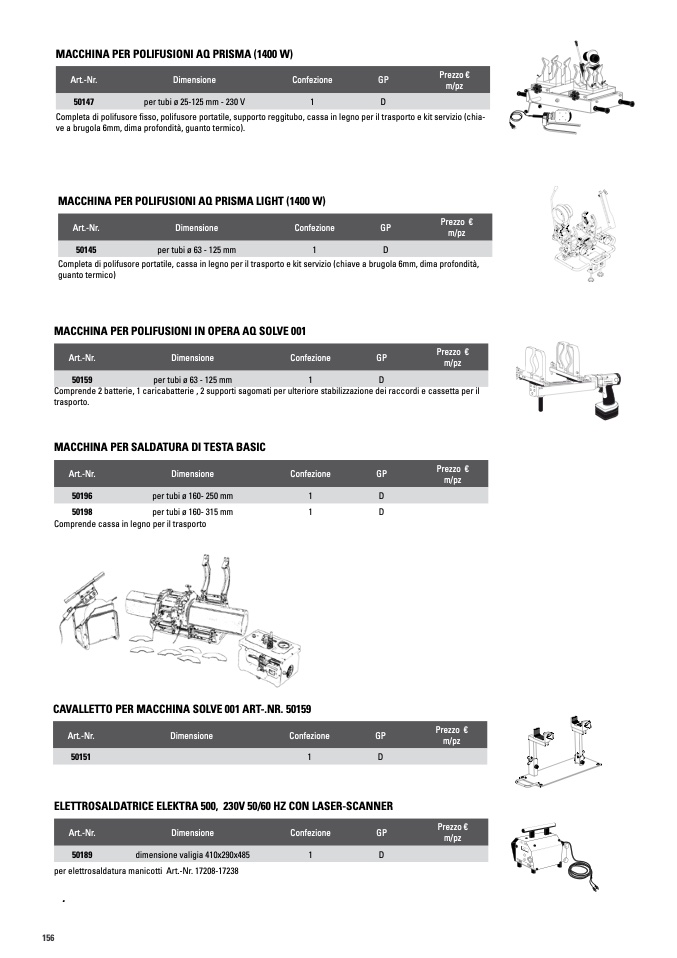 Completa di polifusore fisso, polifusore portatile, supporto reggitubo, cassa in legno per il trasporto e kit servizio (chia-