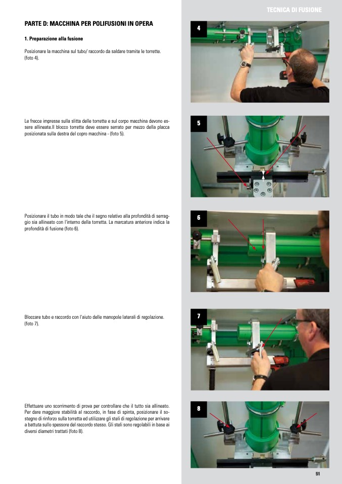 Posizionare la macchina sul tubo/ raccordo da saldare tramite le torrette.