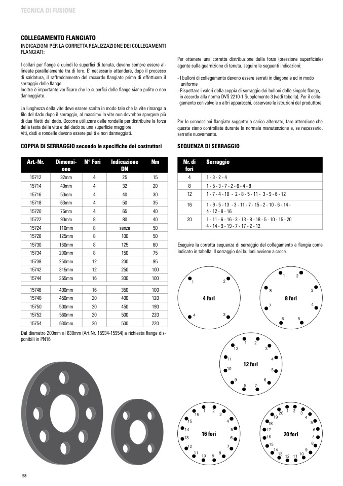 Per le connessioni flangiate soggette a carico alternato, fare attenzione che