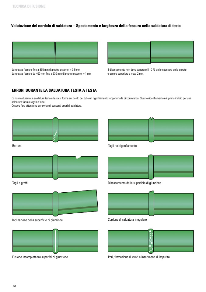 Di norma durante la saldatura testa a testa si forma sul bordo del tubo un rigonfiamento lungo tutta la circonferenza. Questo rigonfiamento è il primo indizio per una