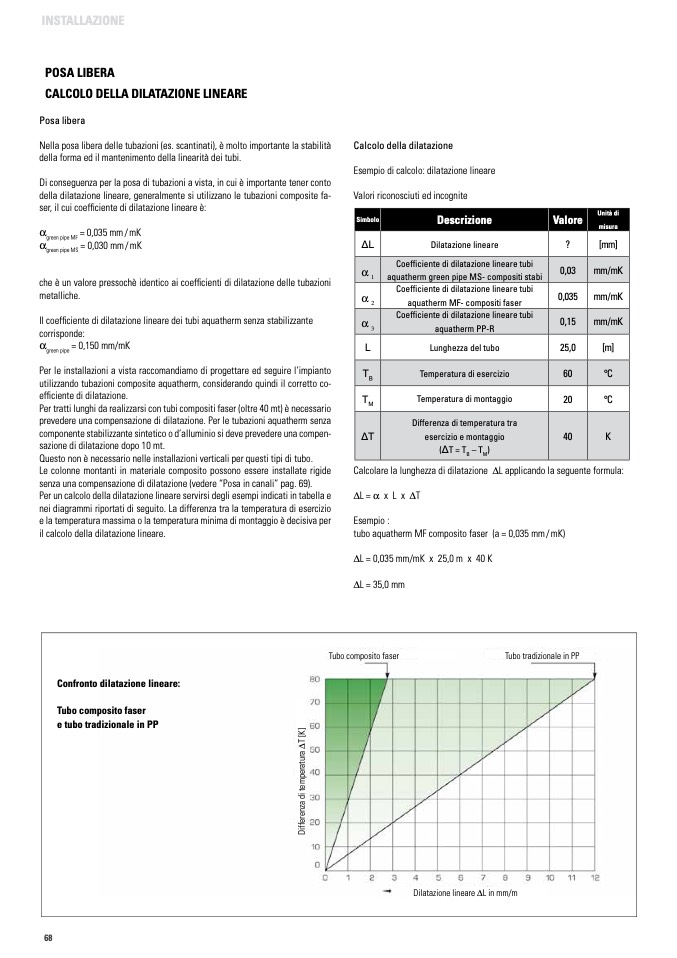Il coefficiente di dilatazione lineare dei tubi aquatherm senza stabilizzante