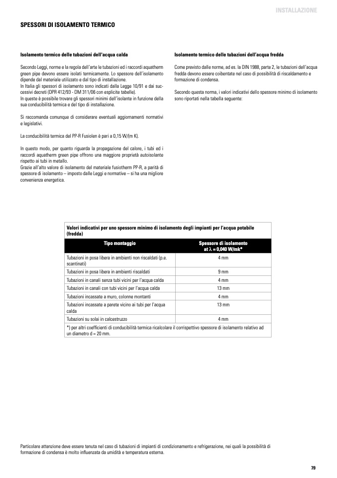 green pipe devono essere isolati termicamente. Lo spessore dell’isolamento
