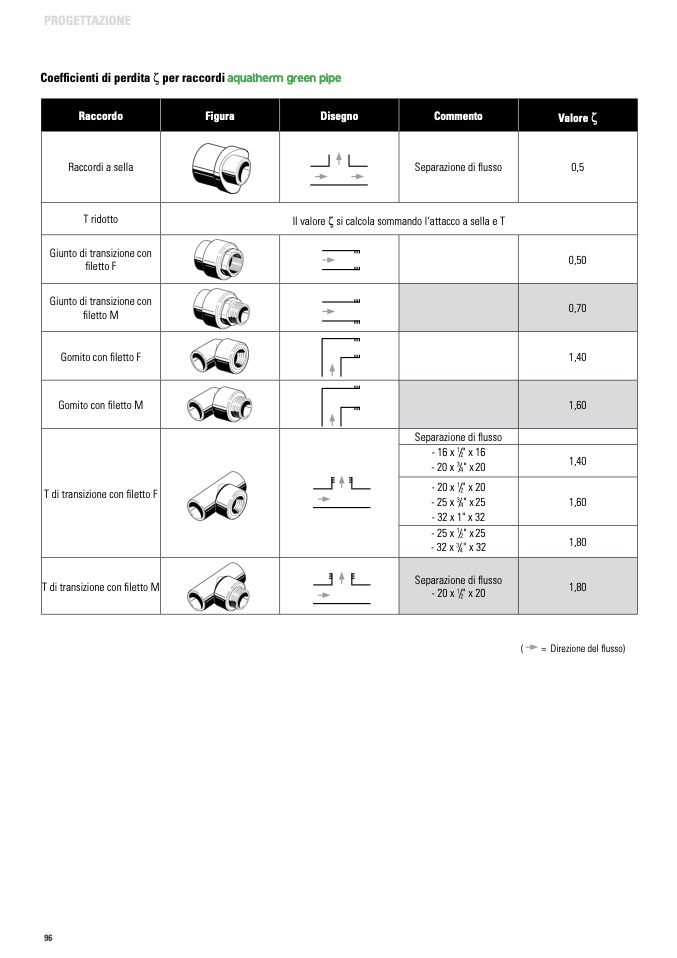 Coefficienti di perdita ζ per raccordi aquatherm green pipe