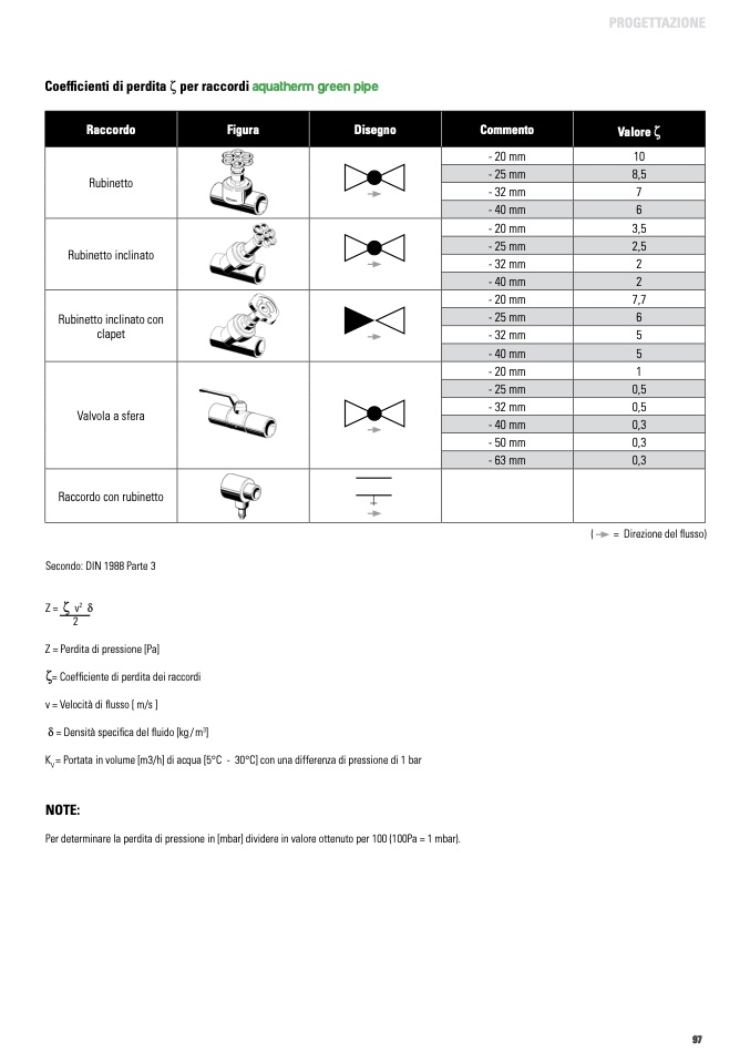 Coefficienti di perdita ζ per raccordi aquatherm green pipe
