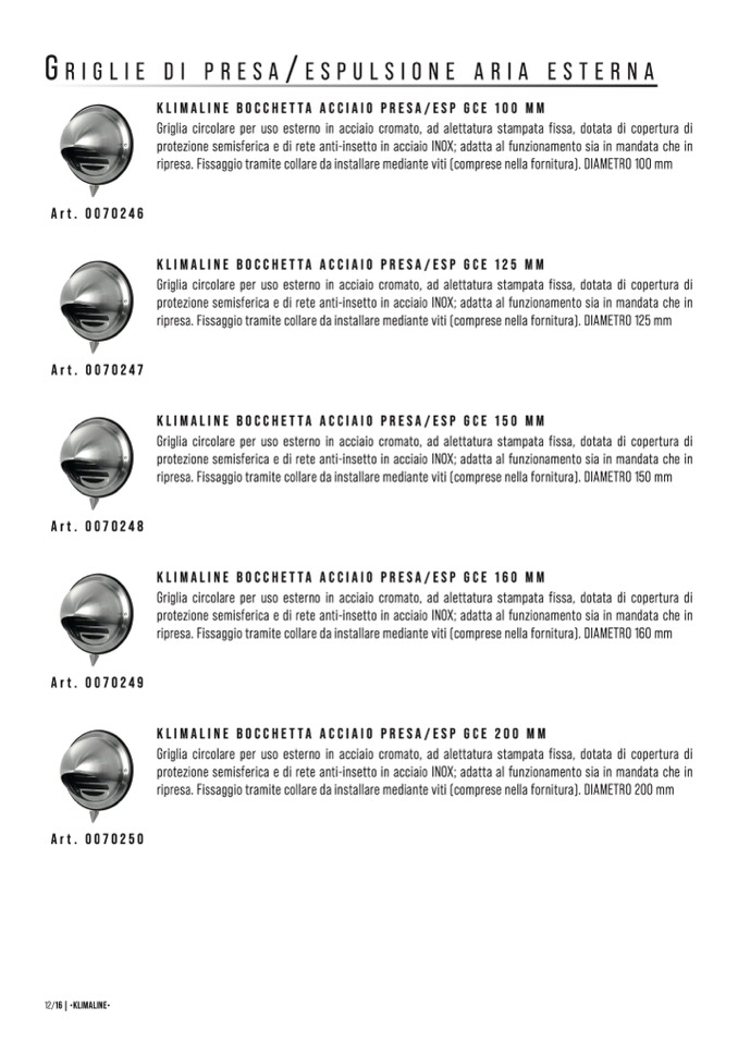 KLIMALINE BOCCHETTA ACCIAIO PRESA/ESP GCE 160 MM