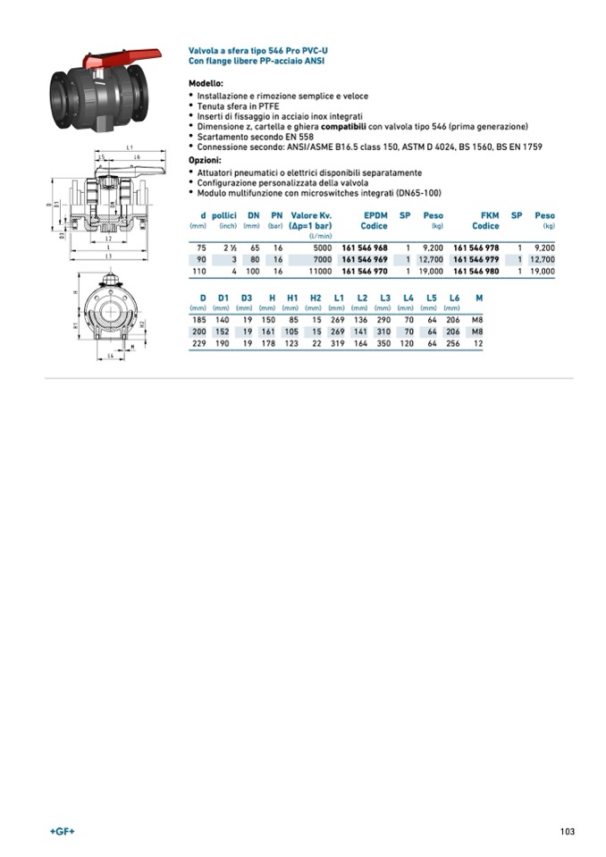 Valvola a sfera tipo 546 Pro PVC-U