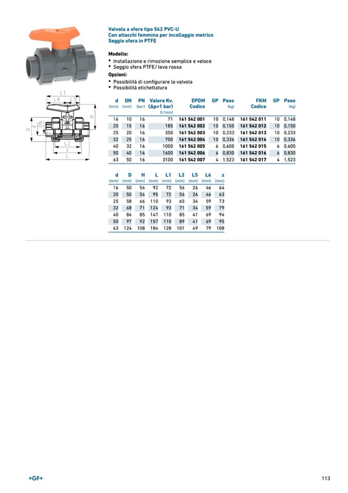 Valvola a sfera tipo 542 PVC-U