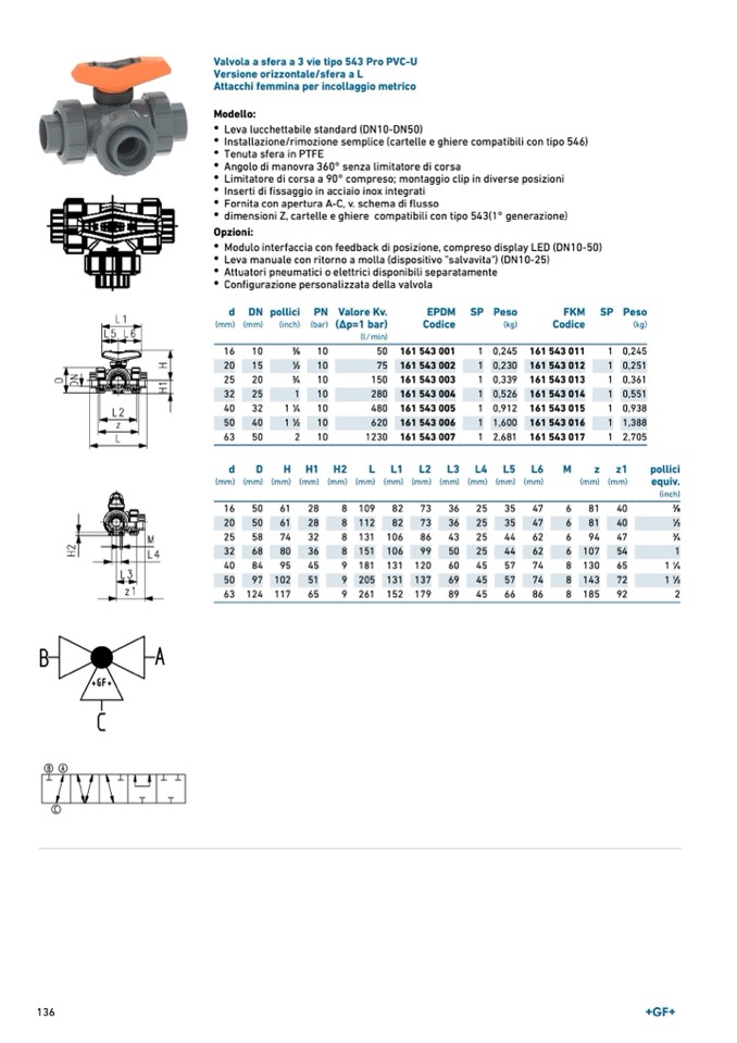 Valvola a sfera a 3 vie tipo 543 Pro PVC-U