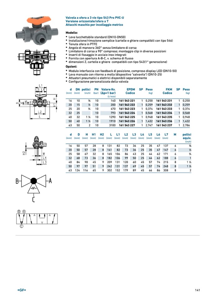 Valvola a sfera a 3 vie tipo 543 Pro PVC-U