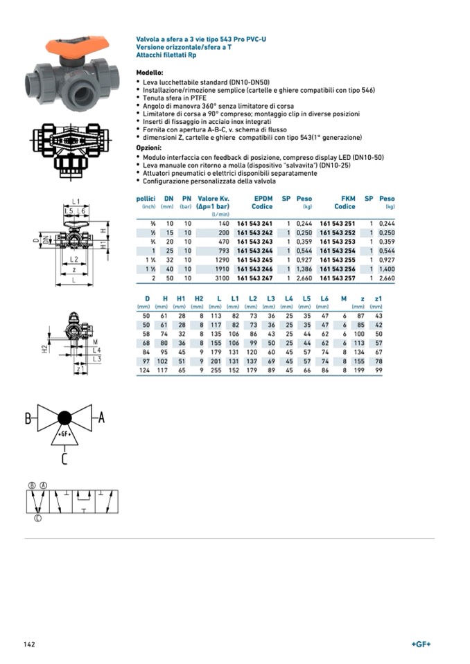 Valvola a sfera a 3 vie tipo 543 Pro PVC-U