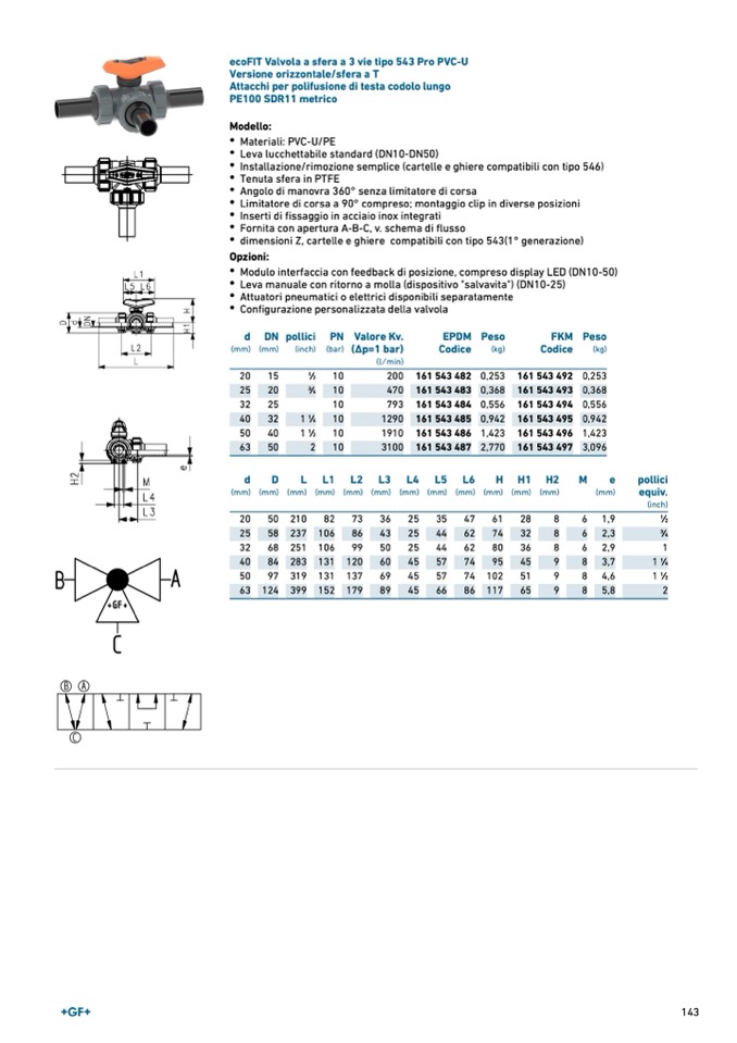 ecoFIT Valvola a sfera a 3 vie tipo 543 Pro PVC-U