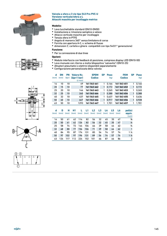 Valvola a sfera a 3 vie tipo 543 Pro PVC-U