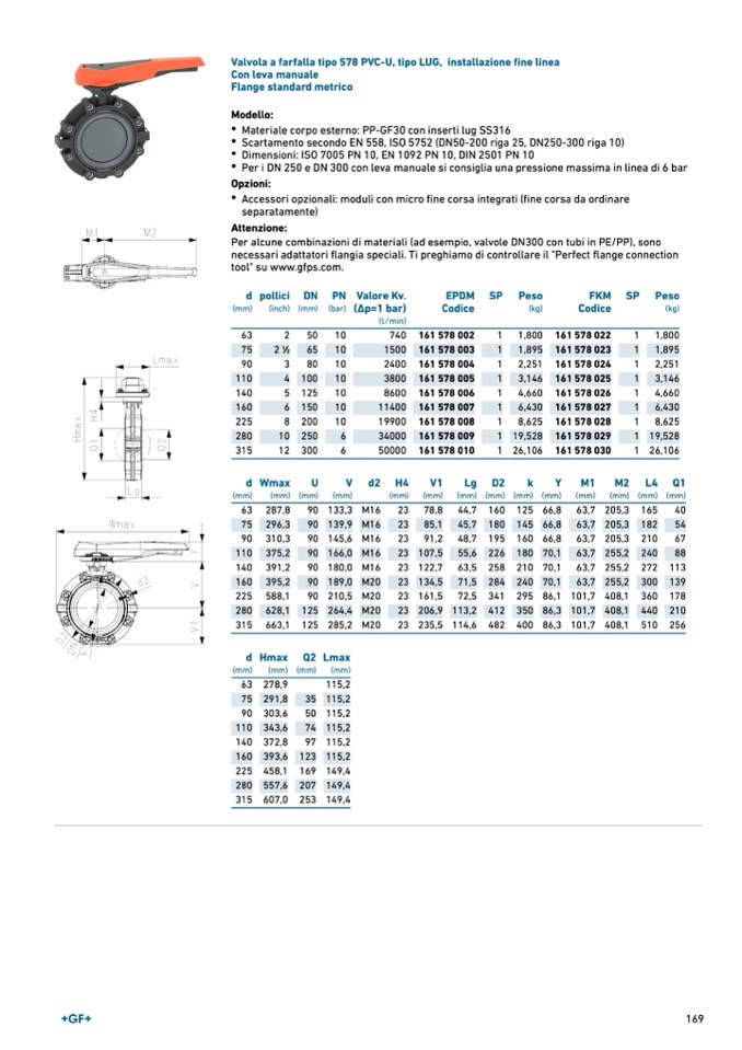 Valvola a farfalla tipo 578 PVC-U, tipo LUG, installazione fine linea