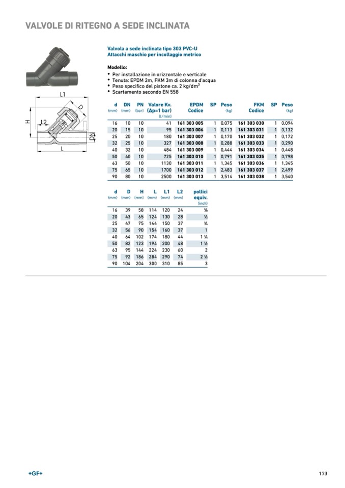Valvola a sede inclinata tipo 303 PVC-U
