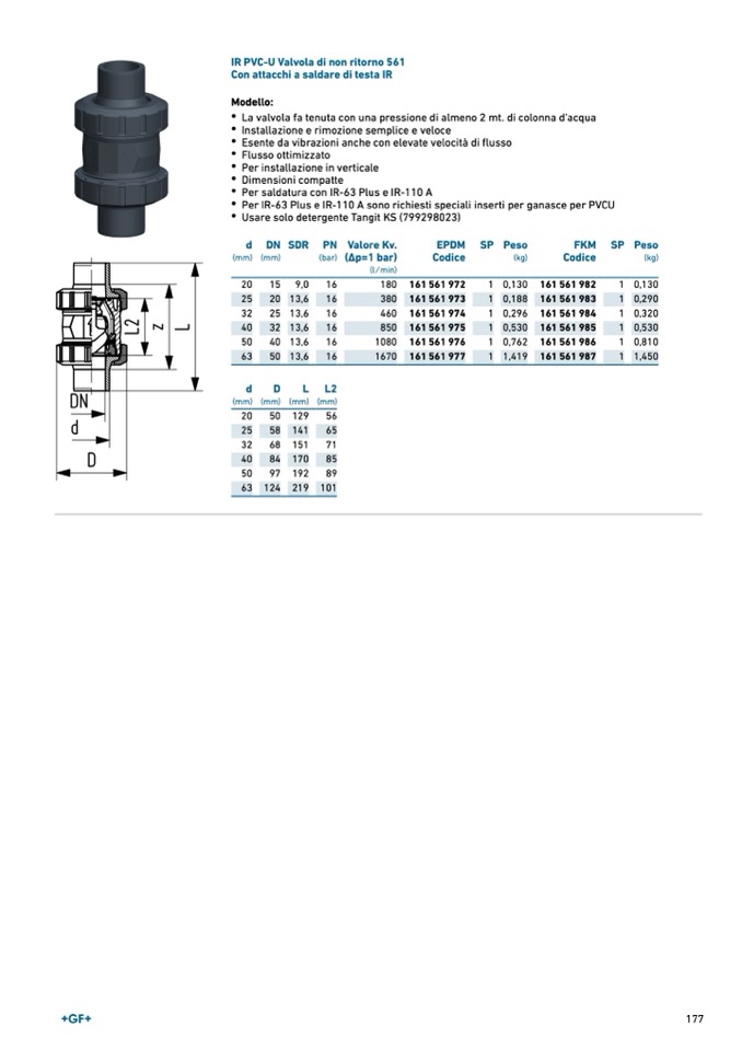 IR PVC-U Valvola di non ritorno 561