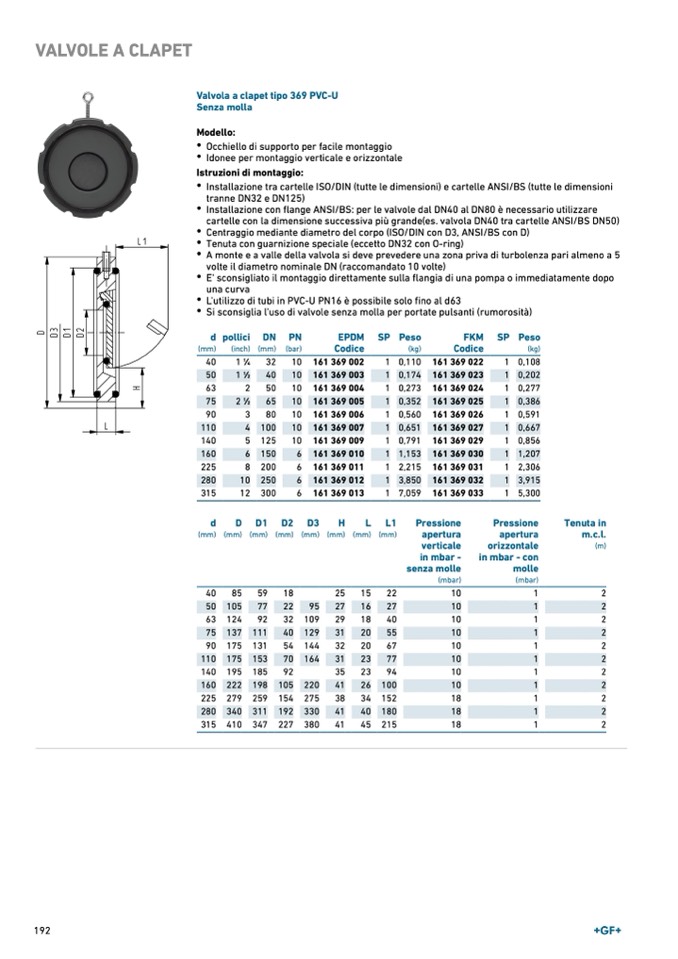 Si sconsiglia l'uso di valvole senza molla per portate pulsanti (rumorosità)