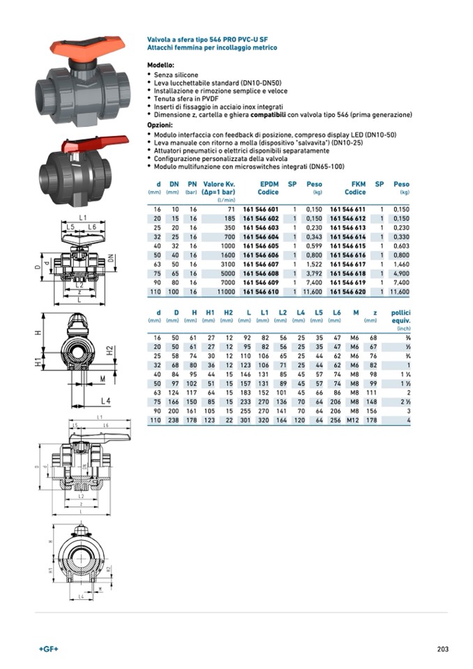 Valvola a sfera tipo 546 PRO PVC-U SF