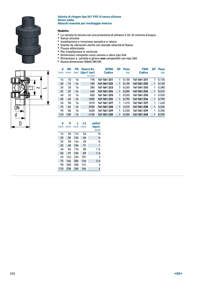 Valvola di ritegno tipo 561 PVC-U senza silicone