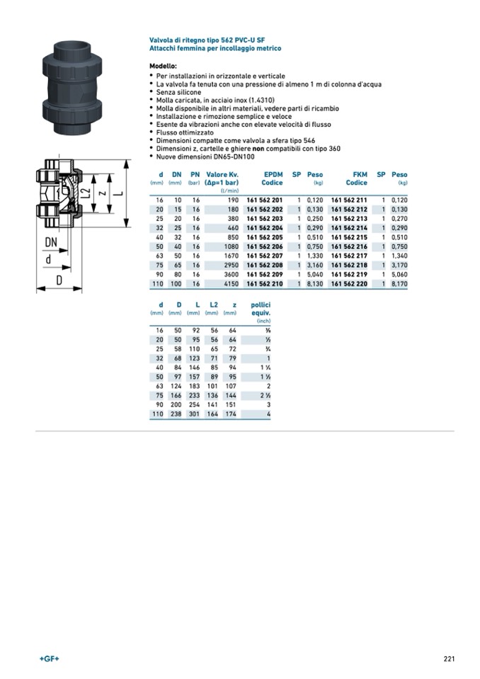 La valvola fa tenuta con una pressione di almeno 1 m di colonna d'acqua