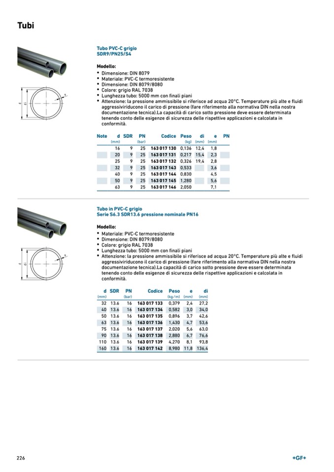Serie S6.3 SDR13.6 pressione nominale PN16
