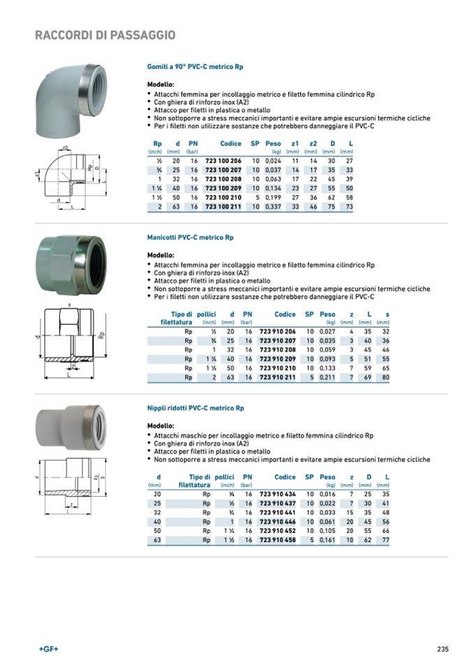 Attacchi femmina per incollaggio metrico e filetto femmina cilindrico Rp