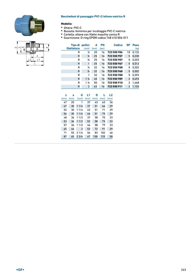 Bocchettoni di passaggio PVC-C/ottone metrico R