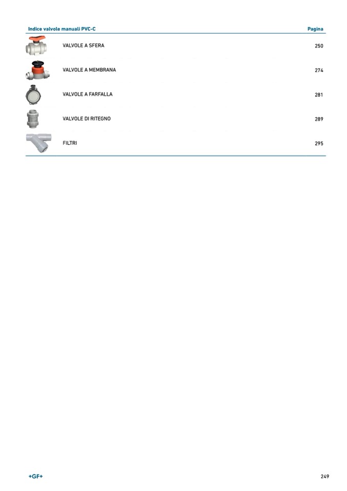 Indice valvole manuali PVC-C