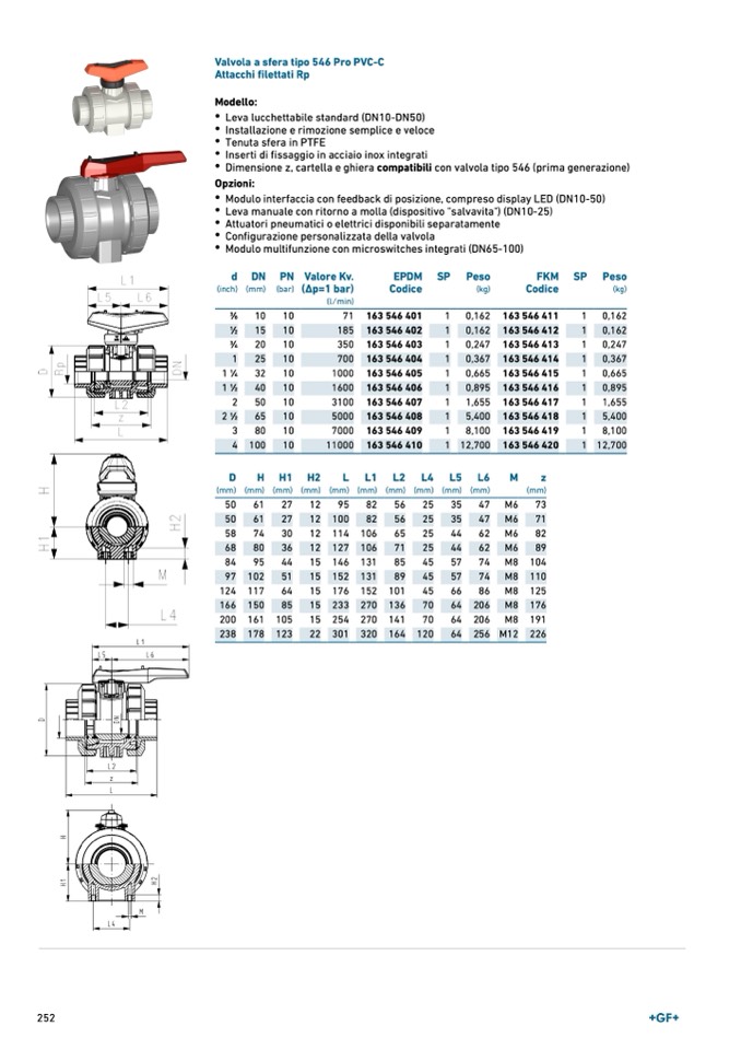 Dimensione z, cartella e ghiera compatibili con valvola tipo 546 (prima generazione)