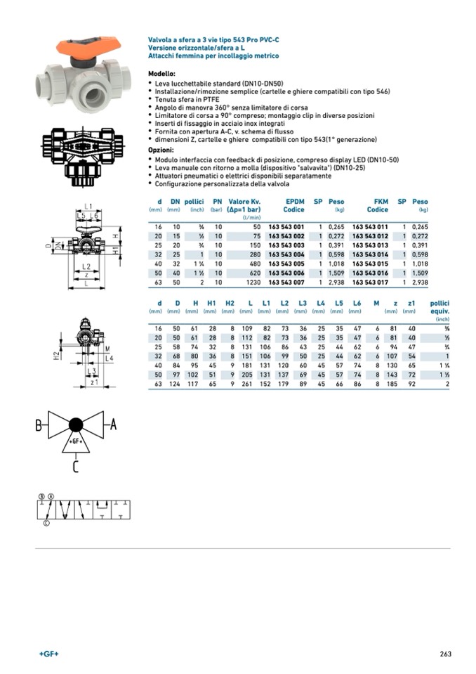 Valvola a sfera a 3 vie tipo 543 Pro PVC-C