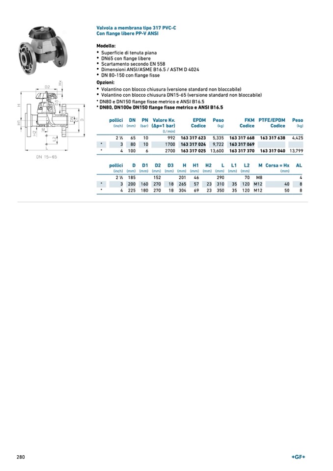 * DN80, DN100e DN150 flange fisse metrico e ANSI B16.5