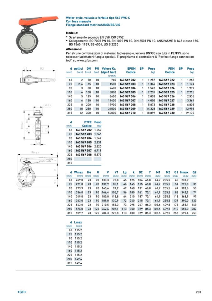 Wafer-style, valvola a farfalla tipo 567 PVC-C
