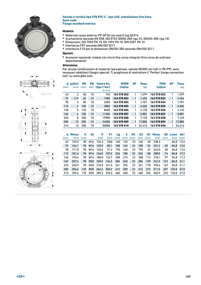 Valvola a farfalla tipo 578 PVC-C , tipo LUG, installazione fine linea