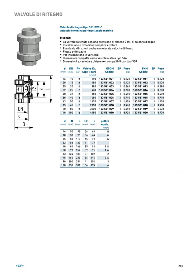 La valvola fa tenuta con una pressione di almeno 2 mt. di colonna d'acqua