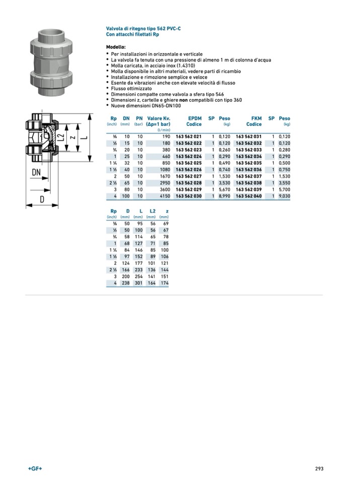 La valvola fa tenuta con una pressione di almeno 1 m di colonna d'acqua