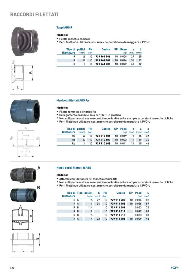Manicotti filettati ABS Rp