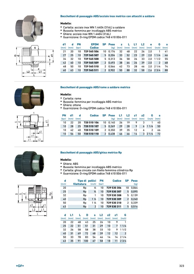 Bocchettoni di passaggio ABS/ghisa metrico Rp