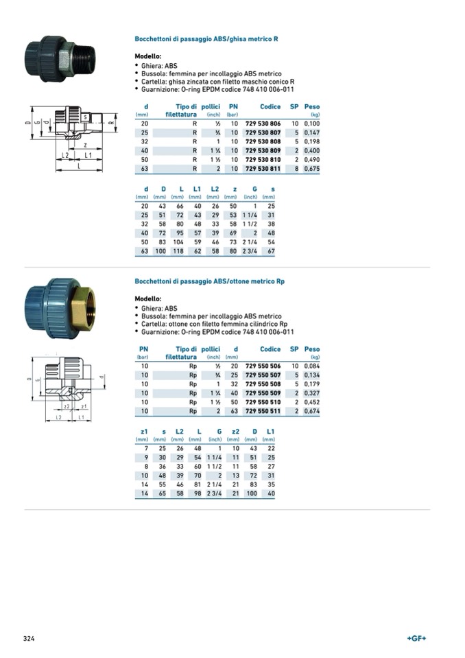 Bocchettoni di passaggio ABS/ottone metrico Rp