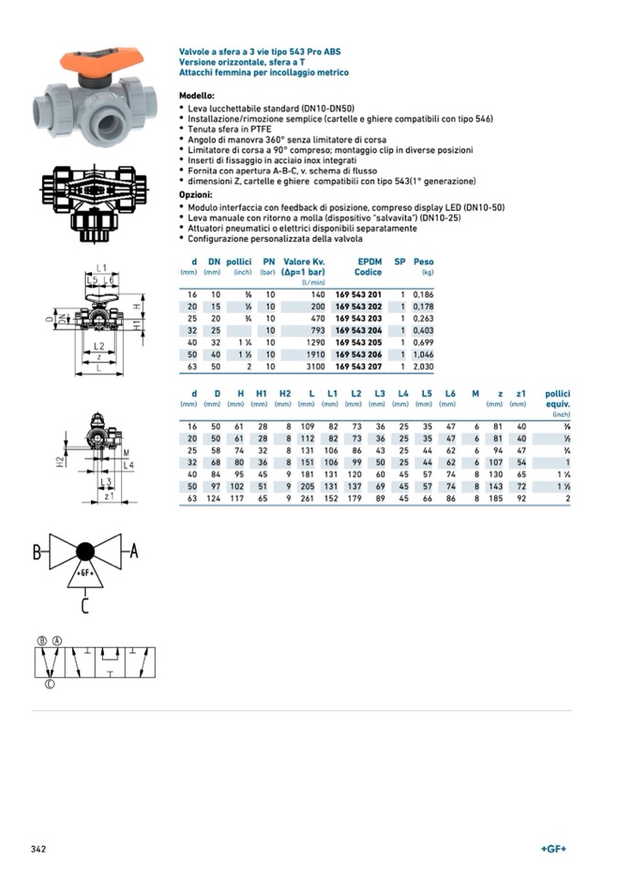 Valvole a sfera a 3 vie tipo 543 Pro ABS