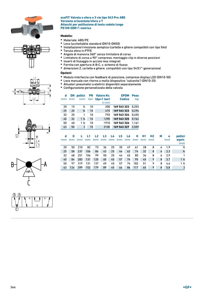 ecoFIT Valvola a sfera a 3 vie tipo 543 Pro ABS