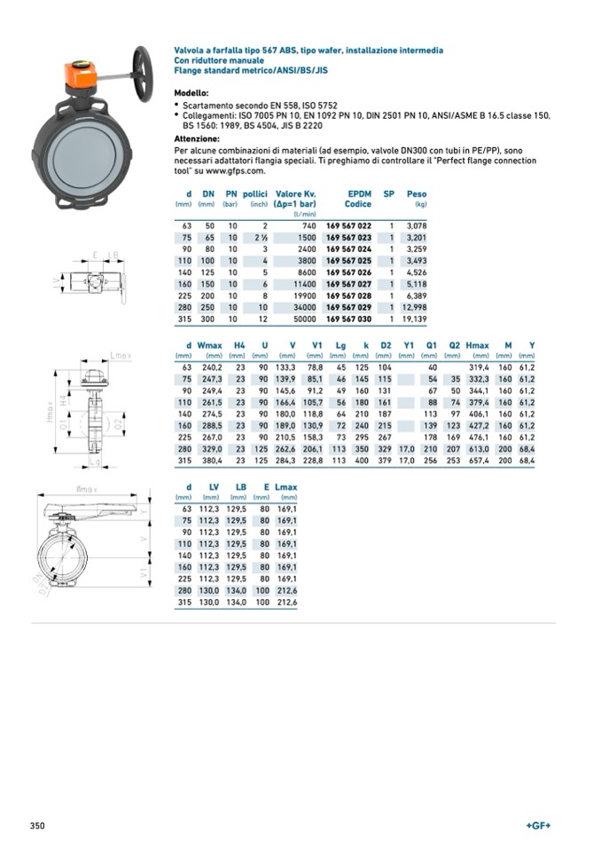 Valvola a farfalla tipo 567 ABS, tipo wafer, installazione intermedia