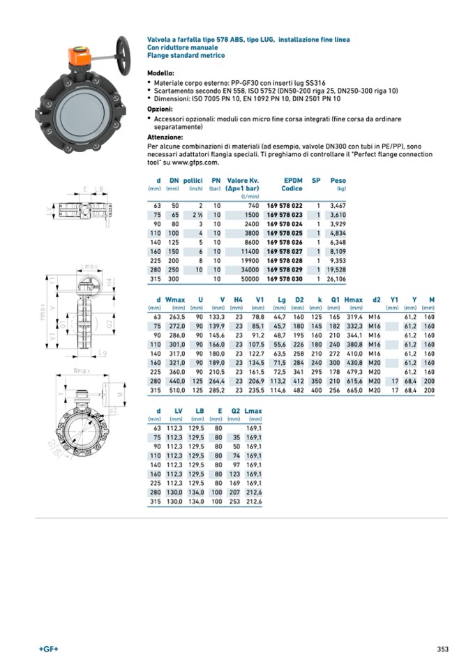 Valvola a farfalla tipo 578 ABS, tipo LUG, installazione fine linea