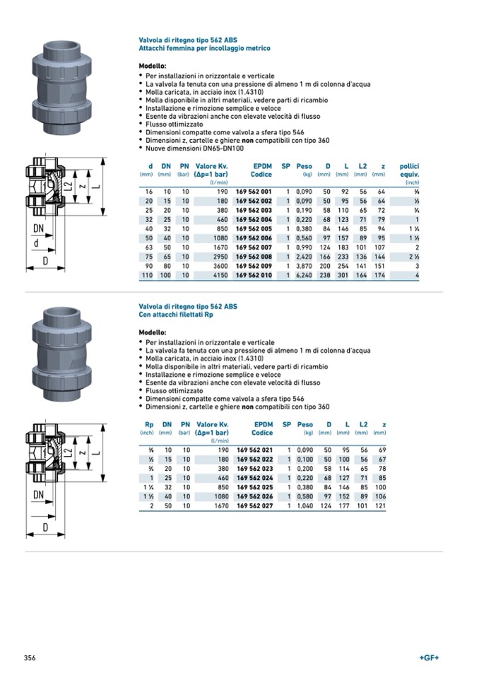 La valvola fa tenuta con una pressione di almeno 1 m di colonna d'acqua
